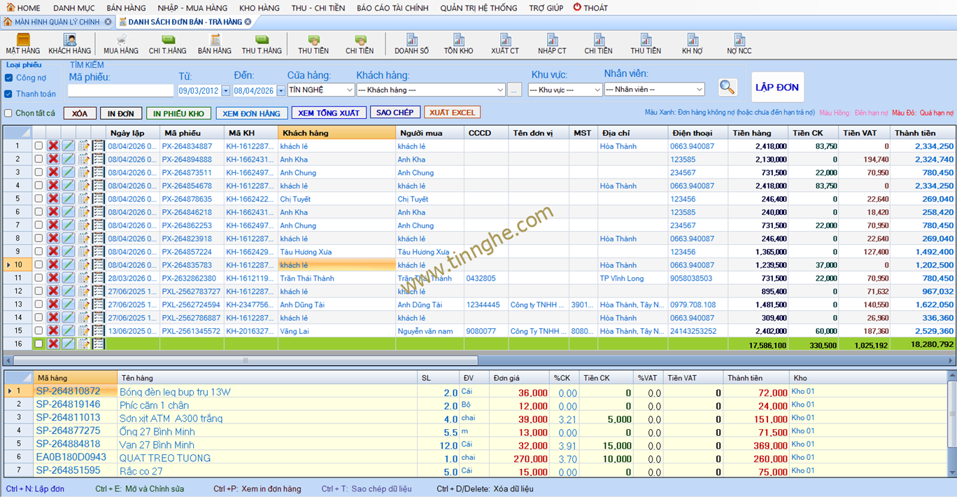 - Báo cáo công nợ tổng quát, chi tiết trên từng khách hàng