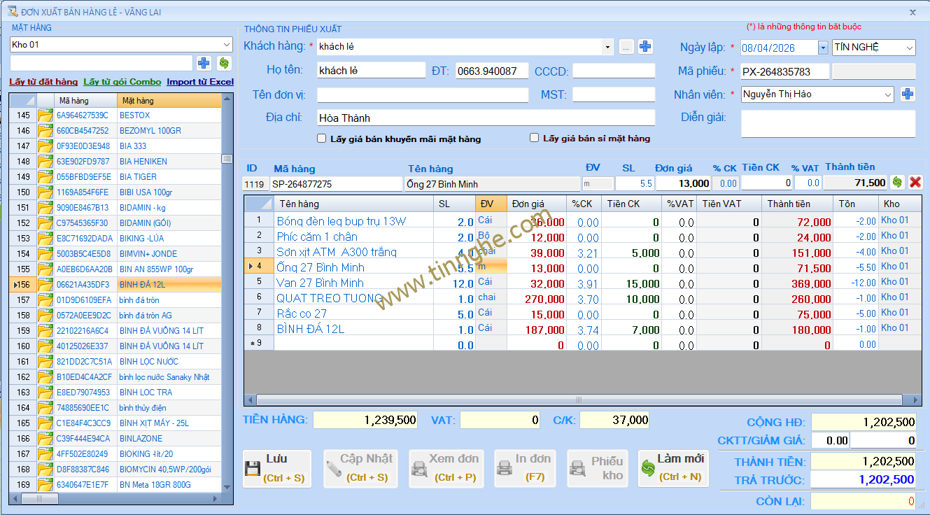 + Hiển thị danh sách và tìm kiếm mặt hàng dễ dàng theo bất kỳ ký tự tên mặt hàng, mã hàng