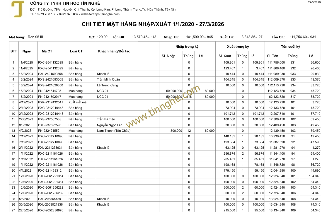 Báo cáo bảng kê chi tiết một mặt hàng xuất, nhập