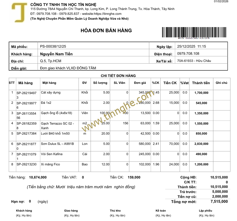 - Mẫu in, khổ in bán hàng/dịch vụ (tùy chọn nhiều khổ in 57, 80, A5, A4, A3)