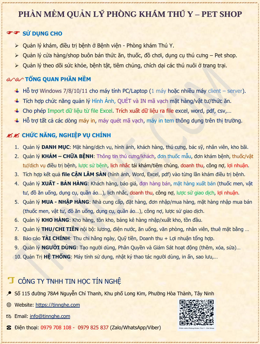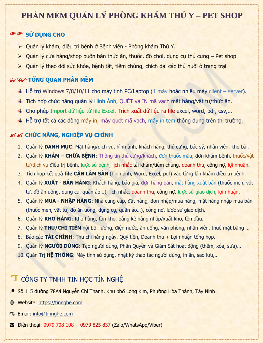 - Phần mềm dùng được cho cả hệ thống nhiều trung tâm/ cửa hàng Thú Y dùng chung với giải pháp sử dụng chung server dữ liệu. (thuê server của Tín Nghệ hoặc khách hàng đã có sẵn server )