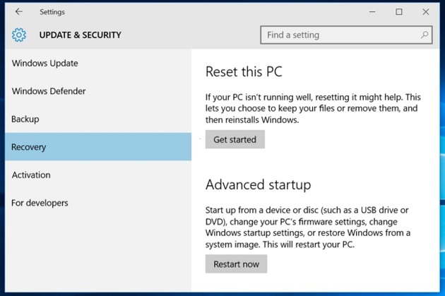 Trên các phiên bản mới nhất của Windows, tức là Windows 8, 8,1 và 10, người dùng sẽ dễ dàng hơn để cài đặt lại Windows hơn bao giờ hết. Người dùng không cần bộ cài đặt Windows như trước. Thay vào đó, chỉ cần sử dụng tính năng “Reset your PC” được tích hợp trong Windows để có được một hệ điều hành mới. Điều này tương tự như cài đặt lại Windows và sẽ xóa tệp hệ thống cũ, cài đặt hệ thống nhưng vẫn giữ nguyên các tệp tin của người dùng trên thiết bị.