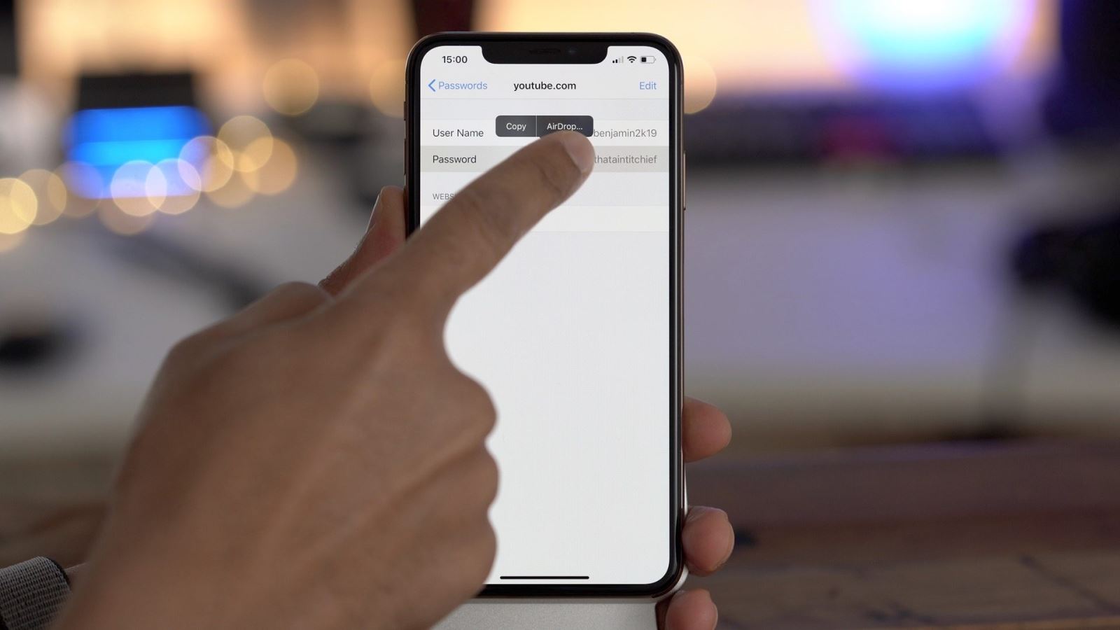 Khi bôi đen bất cứ thứ gì, một dòng chữ Air Drop sẽ hiện ra cạnh chữ copy, chọn Airdrop để gửi nhanh cho những người dùng iPhone đang sử dụng chung mạng không dây với bạn.
