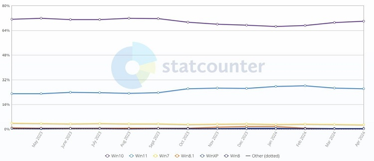 Tuy đây chỉ là suy đoán, nhưng tỷ lệ sử dụng Windows 11 bắt đầu đảo ngược vào tháng 1 năm 2024, khi Microsoft bắt đầu giới thiệu và công bố các tính năng Copilot mới. Có khả năng mọi người đang quay lại Windows 10 để né tránh bản cập nhật 24H2, đó có thể là những cá nhân không thích các công cụ này hoặc là doanh nghiệp không muốn giao phó dữ liệu riêng tư của họ cho trí tuệ nhân tạo.