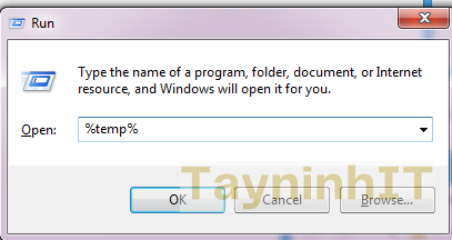 Đầu tiên, bạn nhấn tổ hợp Windows + R. Tiếp theo gõ lệnh sau vào: "%temp%" rồi nhấn OK để vào thư mục chứa các dữ liệu tạm