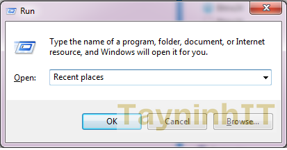 Bạn nhấn tổ hợp Windows + R, gõ vào "Recent places" rồi nhấn OK.