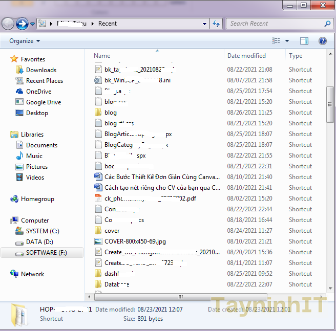 Recent places là nơi lưu lại các hoạt động gần nhất. Ví dụ như thư mục, hình ảnh, file mở cuối cùng,…bạn cần thực hiện xóa thư mục này.