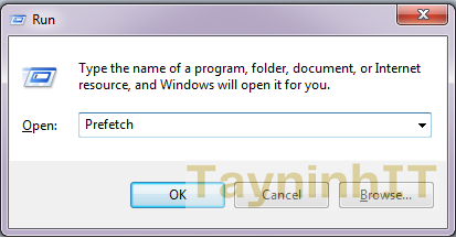 Bạn nhấn tổ hợp phím Windows + R, gõ lệnh Prefetch, nhấn OK để mở cửa sổ Prefetch ra.