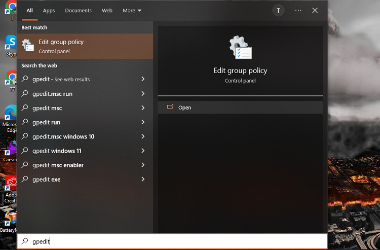 - Bước 1: Tìm kiếm và chọn Edit Group Policy.