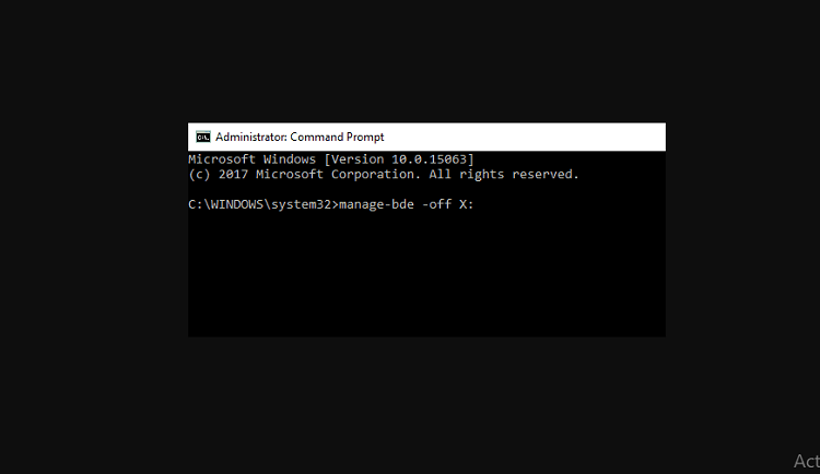 manage-bde -off X: “X” ở đây là tên ổ đĩa mà bạn cần tắt Bitlocker .