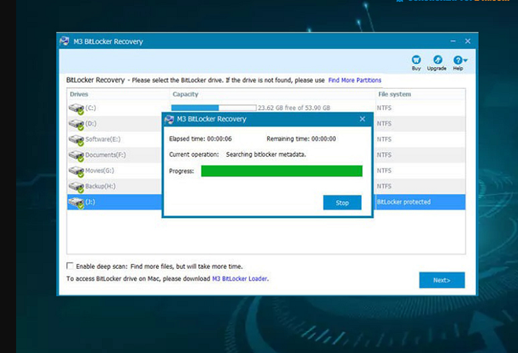 Nếu bạn có mật khẩu của tài khoản Microsoft hoặc mã khôi phục 48 chữ số, bạn hãy thử sử dụng phần mềm khôi phục dữ liệu M3 Bitlocker Recovery để khôi phục dữ liệu từ ổ cứng bị Bitlocker.