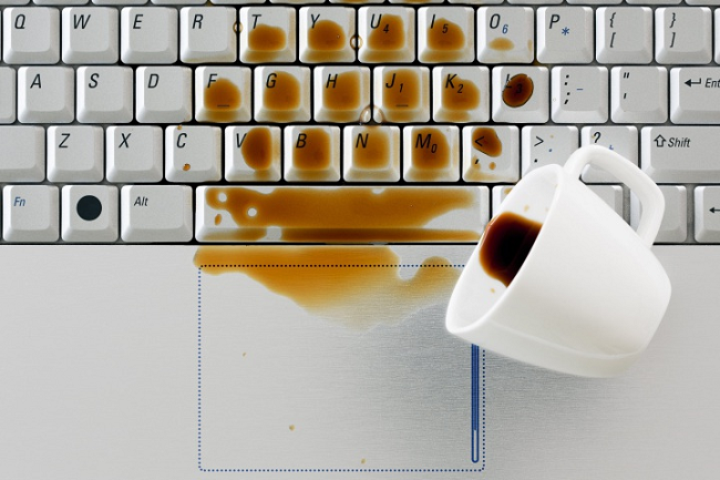 Nguyên nhân: Có thể do sơ ý trong quá trình sử dụng mà những dung dịch lỏng như nước hay cafe,… có cơ hội xâm nhập vào chân bàn phím làm cho bàn phím không còn bấm được nữa. Với trường hợp này cách khắc phục còn phụ thuộc vào lượng nước mà bạn đổ ra mà có thể cứu chữa được bàn phím hay không.