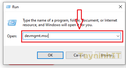 – Bước 2: Lúc này trên màn hình xuất hiện cửa sổ lệnh Run, tại đây bạn nhập devmgmt.msc bằng cách sử dụng bàn phím ảo rồi click chọn OK.