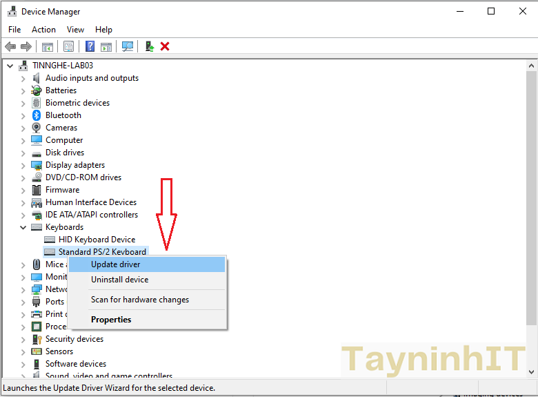 Cách xử lý: Cập nhật driver cho bàn phím