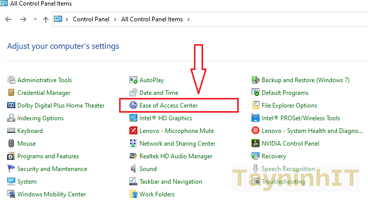 - Bước 2: Tìm và chọn Mục Ease of Access Center