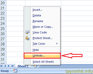 2) Cách hiện lại các sheet bị ẩn trong Excel