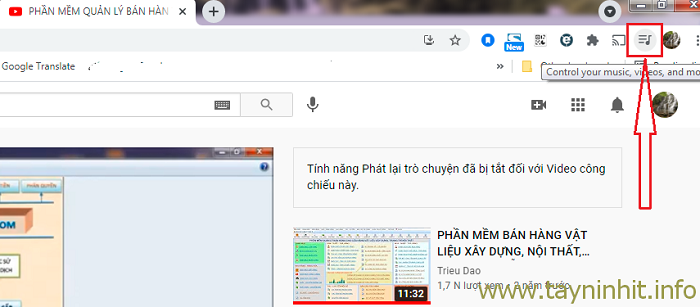 - Bước 2: Chọn một video trên YouTube, nhấn vào biểu tượng Global Media Controls trên góc phải của màn hình (phía bên phải của thanh công cụ).