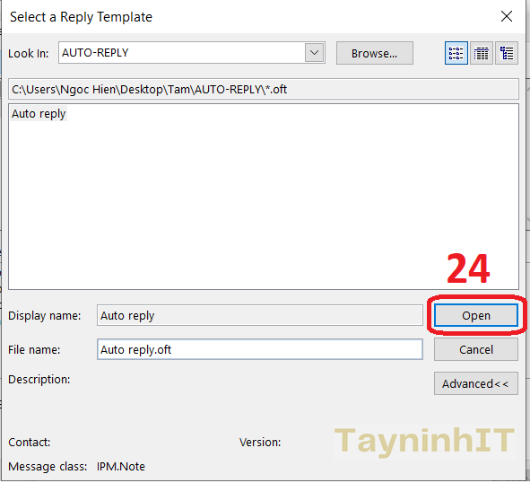 - Bước 12: Bạn tích chọn file Auto Reply > Open