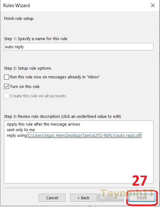 Như vậy chúng ta đã hoàn thành cách cài đặt trả lời Email tự động trong Outlook rồi đó, chúc các bạn thành công!
