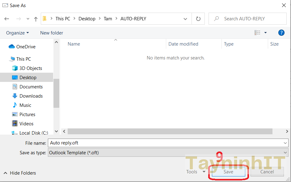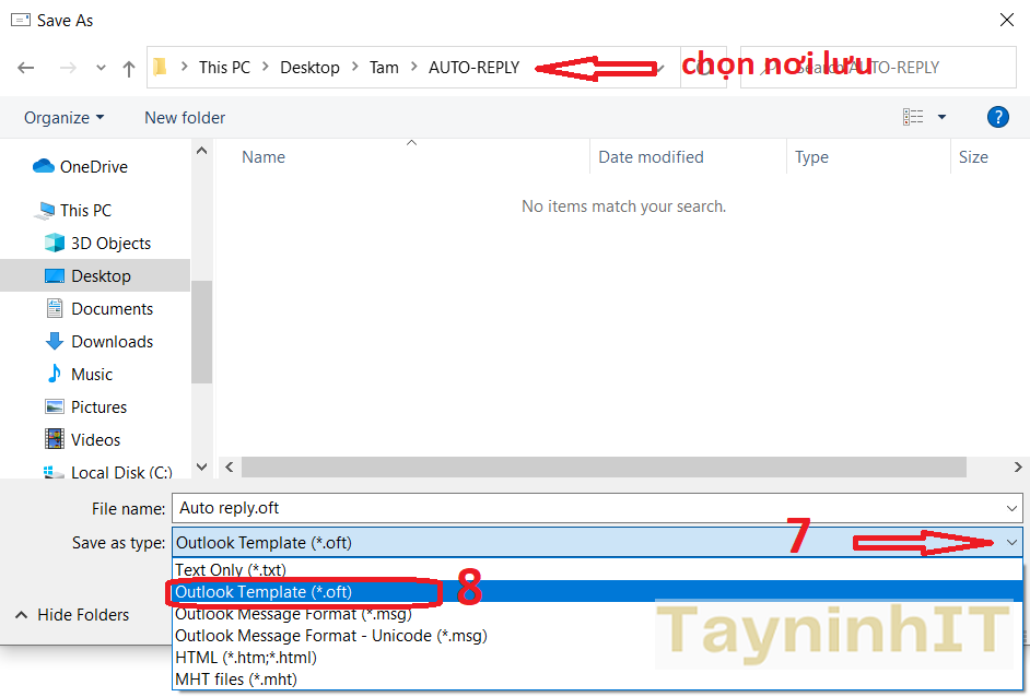 - Bước 4: Hộp thoại Save as hiện lên chọn thư mục lưu > ở phần Save as type chọn Outlook Template