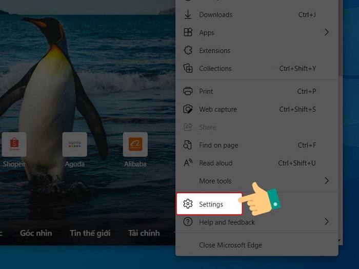 Chọn biểu tượng 3 dấu chấm > Settings > Languages > Add languages > Tìm kiếm Vietnamese – Tiếng Việt > Add > Biểu tượng 3 dấu chấm ở mục Tiếng Việt > Display Microsoft Edge in this language > Restart.