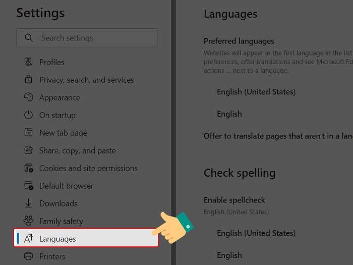 - Bước 3: Danh sách các mục thiết lập cho trình duyệt ở bên trái giao bạn tiếp tục nhấn chọn mục Languages (Ngôn ngữ).
