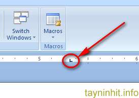 Bước 1: Bạn cần xác định được độ dài của Tab bằng cách tích chuột trái lên thanh Ruler của Word, khi thấy xuất hiện Tab như hình bên dưới là được.