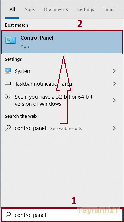 - Bước 1: Tìm đến trình thiết lập driver printer bằng cách click chuột trái vào Menu Start gõ "Control Panel" --> Click vào Control Panel