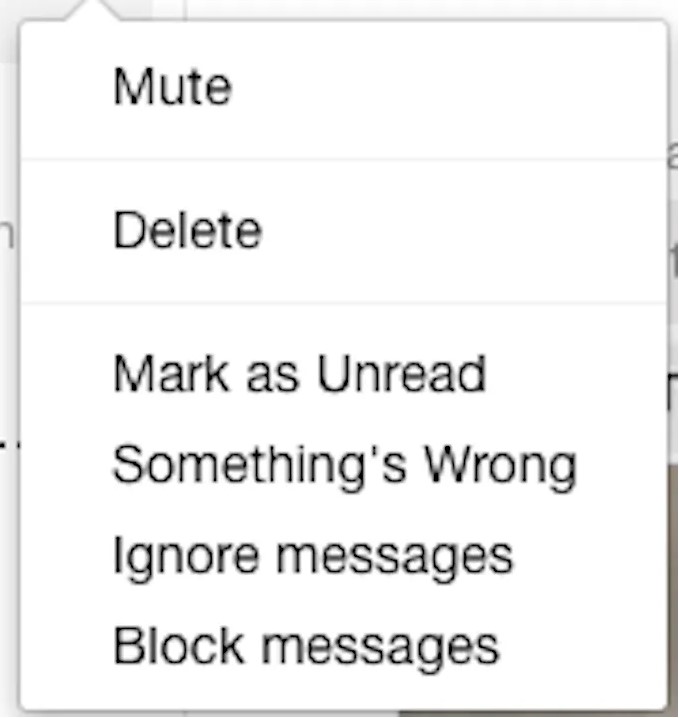 Chỉ cần tìm cuộc hội thoại bạn muốn chặn trong thanh bên và di con trỏ qua đó --> Nhấp vào ba dấu chấm lửng xuất hiện. Một menu sẽ bật lên cho phép bạn Tắt tiếng, Xóa, Đánh dấu là Chưa đọc và một số tùy chọn khác. Ở cuối menu này là tùy chọn Chặn tin nhắn. Click vào đây.