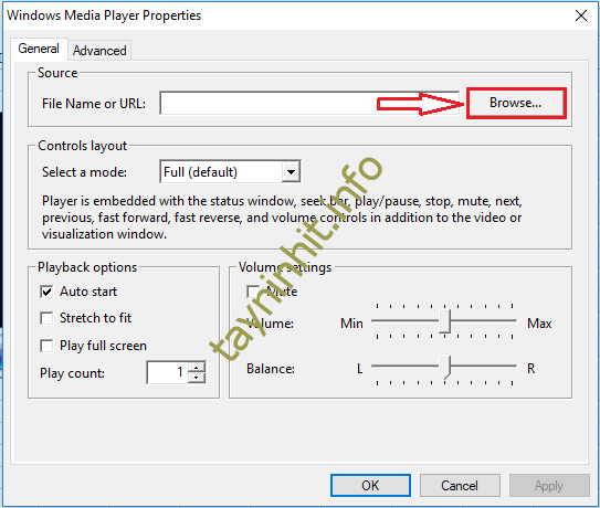 Hiển thị hộp thoại để chúng ta thêm tập tin media, bạn nhấn vào nút Browse để thêm file video muốn chèn vào bảng tính trong Excel.