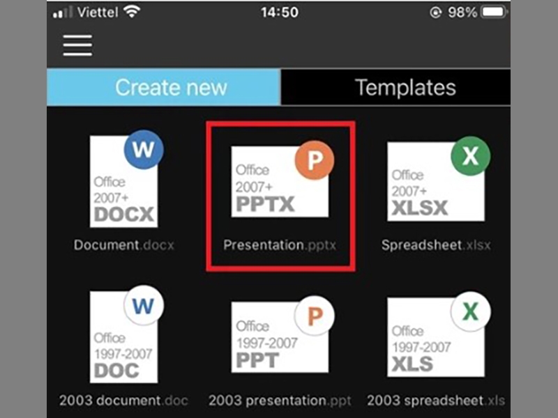 Bước 3: Tiếp theo, bạn chọn mục Presentation.pptx để làm PowerPoint.