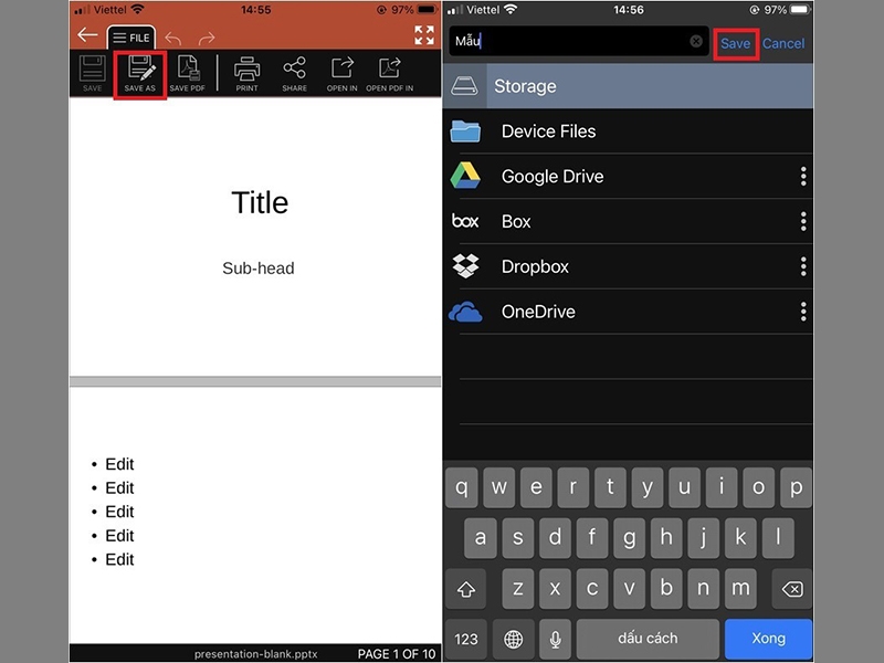 Thao tác chèn video vào PowerPoint bằng điện thoại trên ứng dụng Smart Office thực hiện như sau: