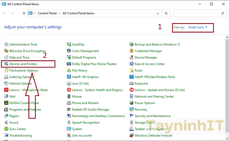 - Bước 1: Truy cập vào Control Panel sau đó tìm và chọn vào Devices and Printers.