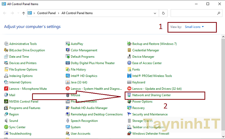 - Bước 5: Quay lại giao diện Control Panel, sau đó chọn mục “Network and Sharing Center”.