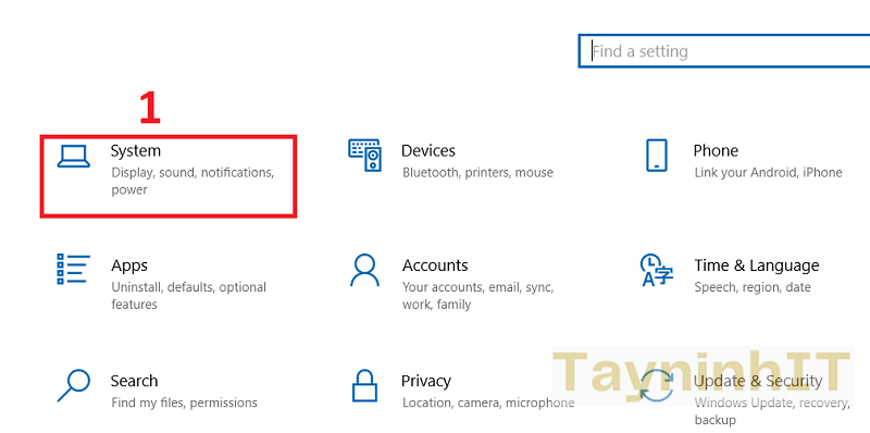 Nhấn tổ hợp phím Windows + I để mở Windows Setting > System để kiểm tra các mục thiết lập trên máy tính.