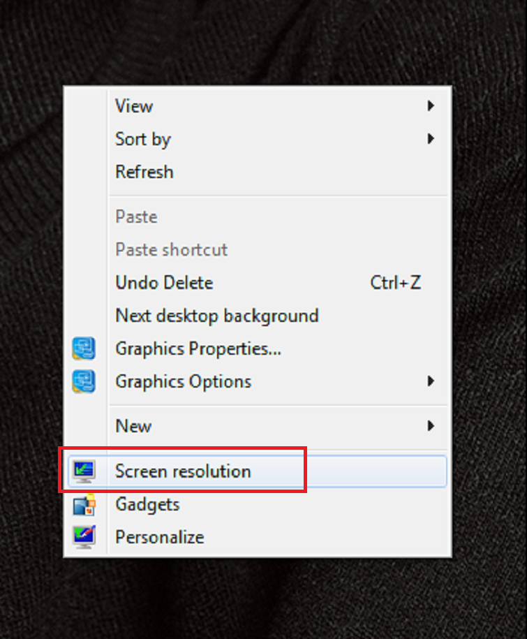 - Bước 1: Ngoài màn hình Desktop --> click chuột phải chọn vào mục Screen resolution.