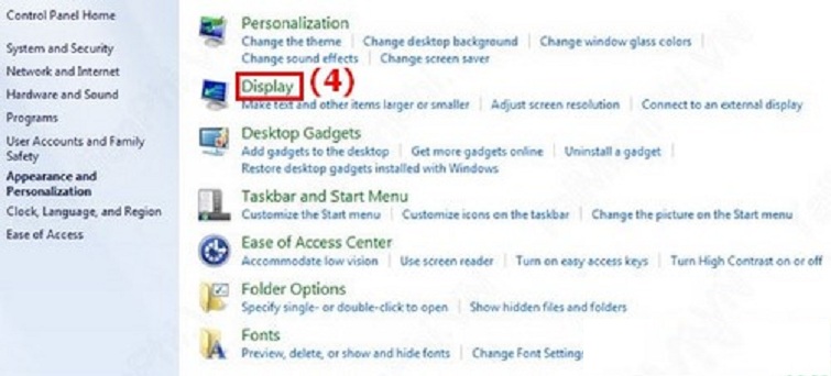 - Bước 3: Khi cửa sổ tiếp theo xuất hiện, bạn click vào Display.