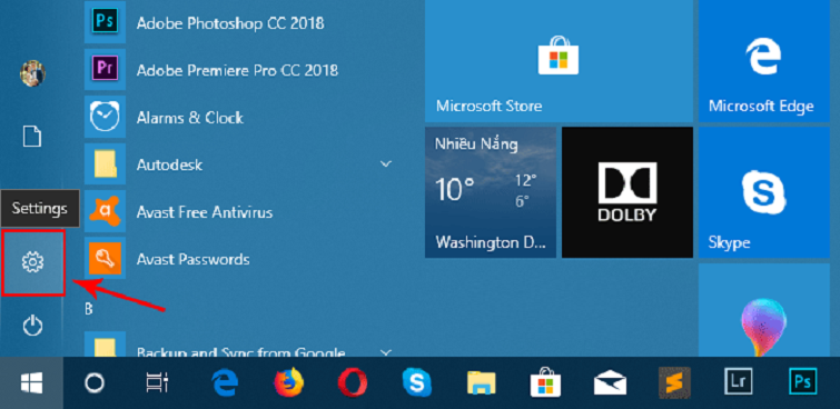- Bước 1: Đầu tiên, các bạn hãy nhấp vào nút Start và chọn Settings.