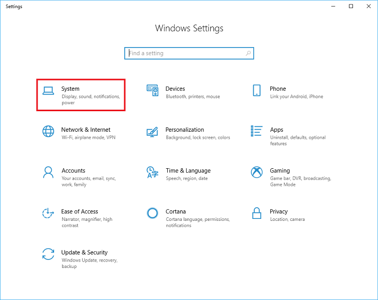 - Bước 2: Tại màn hình Window Setting --> chọn System.