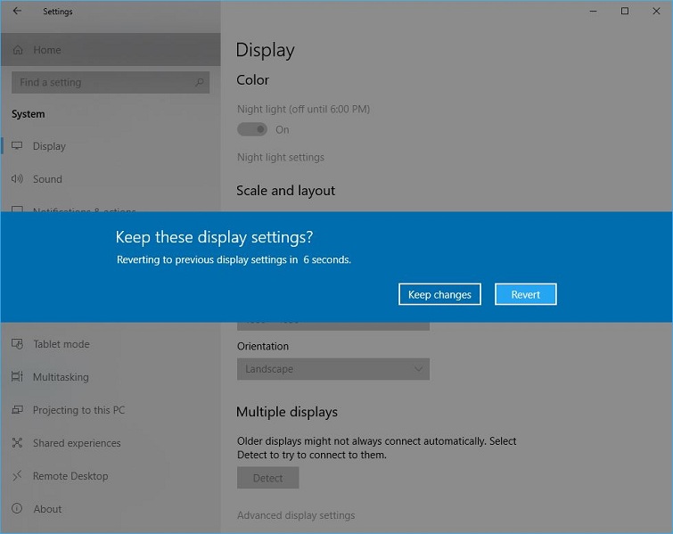 Khi các bạn thay đổi độ phân giải. Lúc này, hệ điều hành Windows sẽ nhắc bạn có chắc chắn muốn thay đổi hay không và sẽ hiện thị độ phân giải trước trong một vài giây. Để có thể thay đổi, các bạn chọn Revert, ngược lại bạn hãy chọn vào Keep changes.