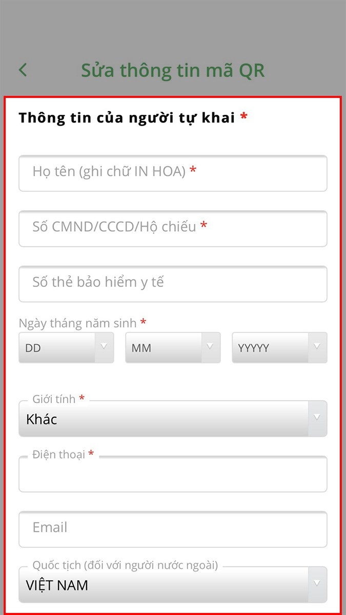 - Bước 3: Tiến hành cập nhật các thông tin cá nhân tại mục Thông tin của người tự khai.