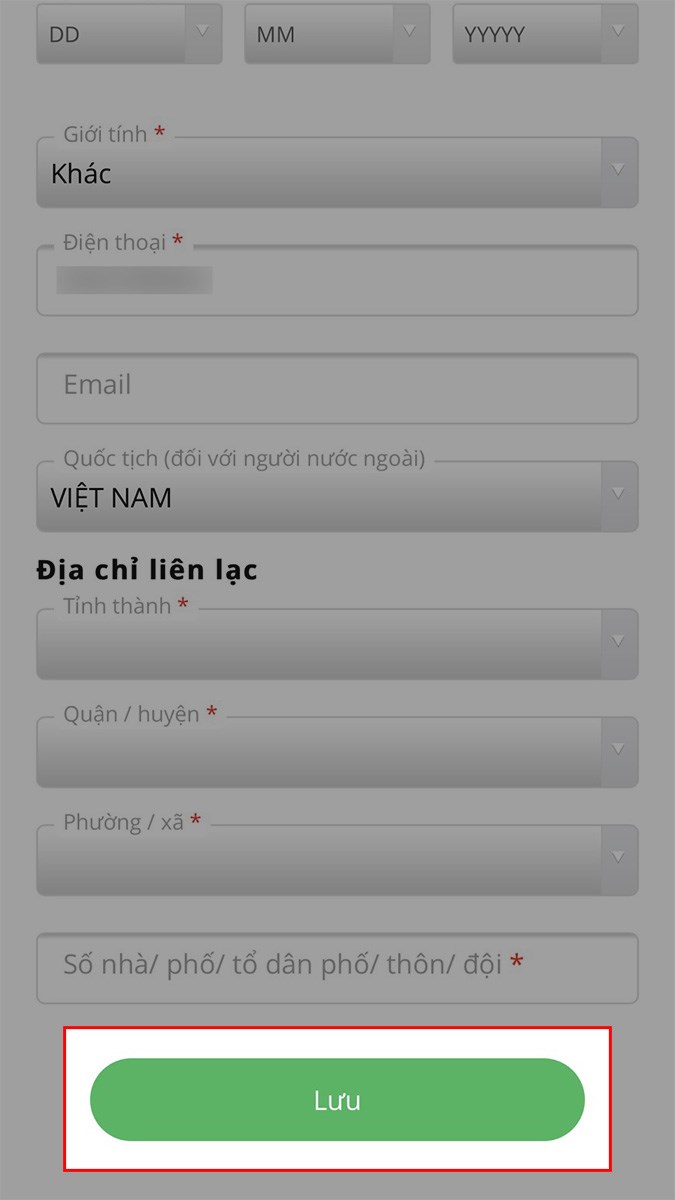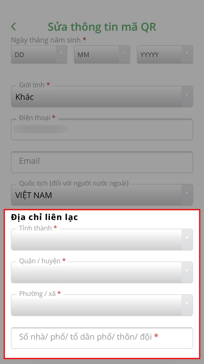 Chỉnh sửa các thông tin về địa chỉ tại mục Địa chỉ liên lạc.