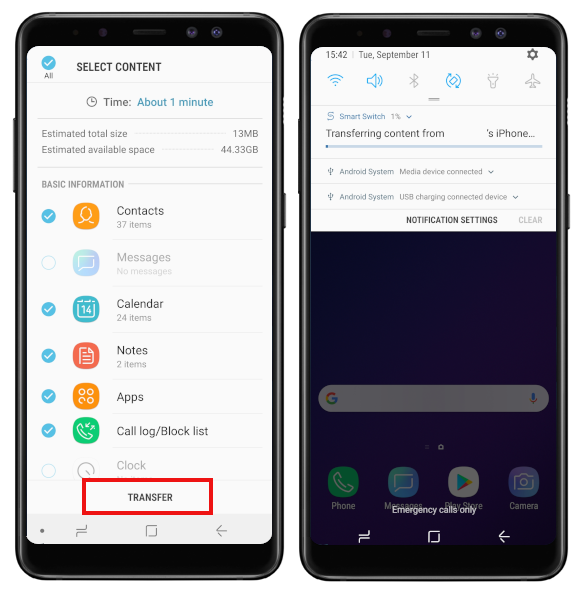 Các dữ liệu được chuyển sẽ được tìm thấy trong các danh mục tương ứng như ảnh thì nằm ở thư viện, số điện thoại nằm ở danh bạ của máy...