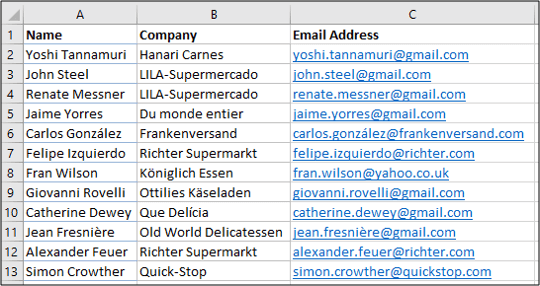 Đóng cửa sổ làm việc Excel. Các liên hệ đã sẵn sàng để được import vào Outlook.
