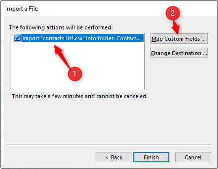 - Bước 6: Nhấp vào Map Custom Fields để khớp chính xác các trường từ bảng tính Excel với các trường tương ứng trong Outlook.