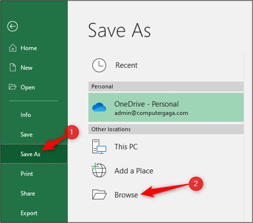 - Bước 2: Nhấp vào File > Save As > Browse.