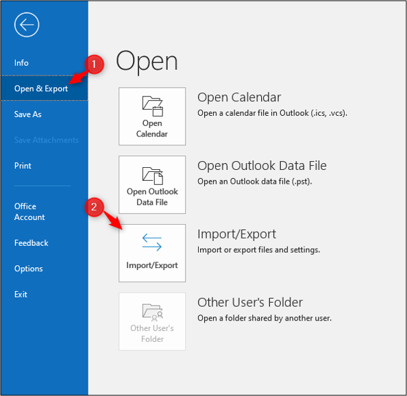 - Bước 1: Để chuyển danh bạ trên file Excel vừa lưu vào Outlook, bạn mở Outlook, nhấn vào File > Open & Export > Import/Export.