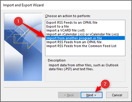 - Bước 2: Tiếp đó, ở cửa sổ Import and Export Wizard > Import from Another Program or File > Next.
