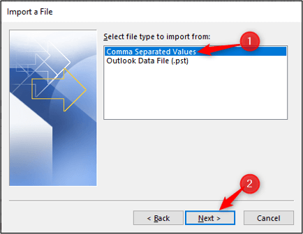 - Bước 4: Chọn nút Browse để tìm tệp CSV bạn muốn nhập > Next
