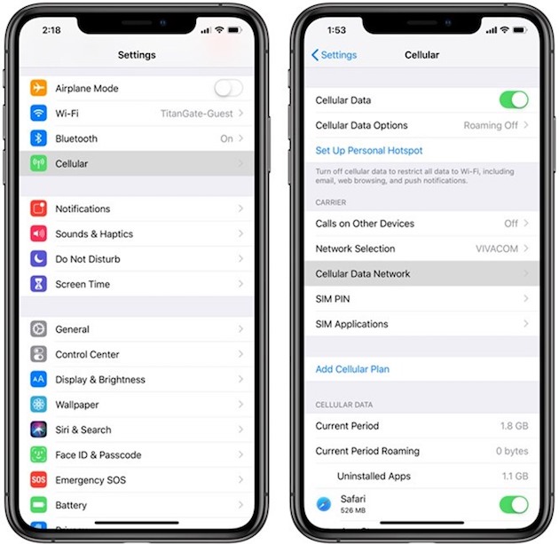 Bước 2: Truy cập vào mục Cellular > Cellular Data Network